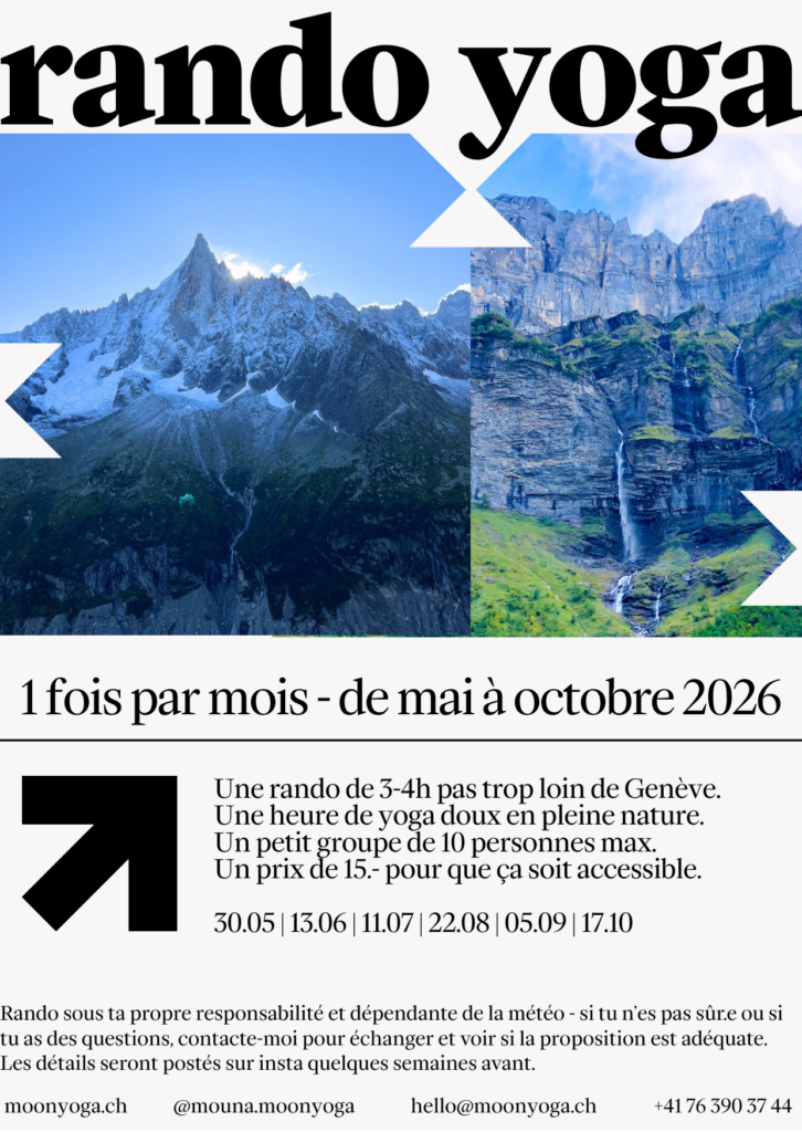 Je donne un cours de vinyasa flow tous les dimanches de 11h à 12h30 au studio Soham à Genève.